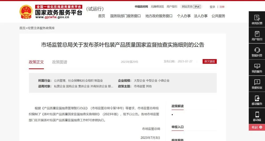 近日,市場監管總局首次發布了《茶葉包裝產品質量國家監督抽查實施細則》(2023年版)(以下簡稱《細則》),對茶葉包裝產品質量的抽樣方法、檢驗依據、判定規則、判定原則等作出了規定。