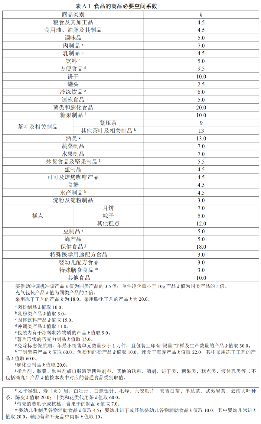 具體食品的商品必要空間系數(shù)內(nèi)容如下: