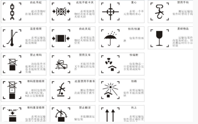 ⑤體積與重量標志一一標明每一箱的實際外廓尺寸(長*寬*高)和重量(凈重和總量),以便承運部門參考這些數據,選擇運輸方式和貨物的堆垛方法。